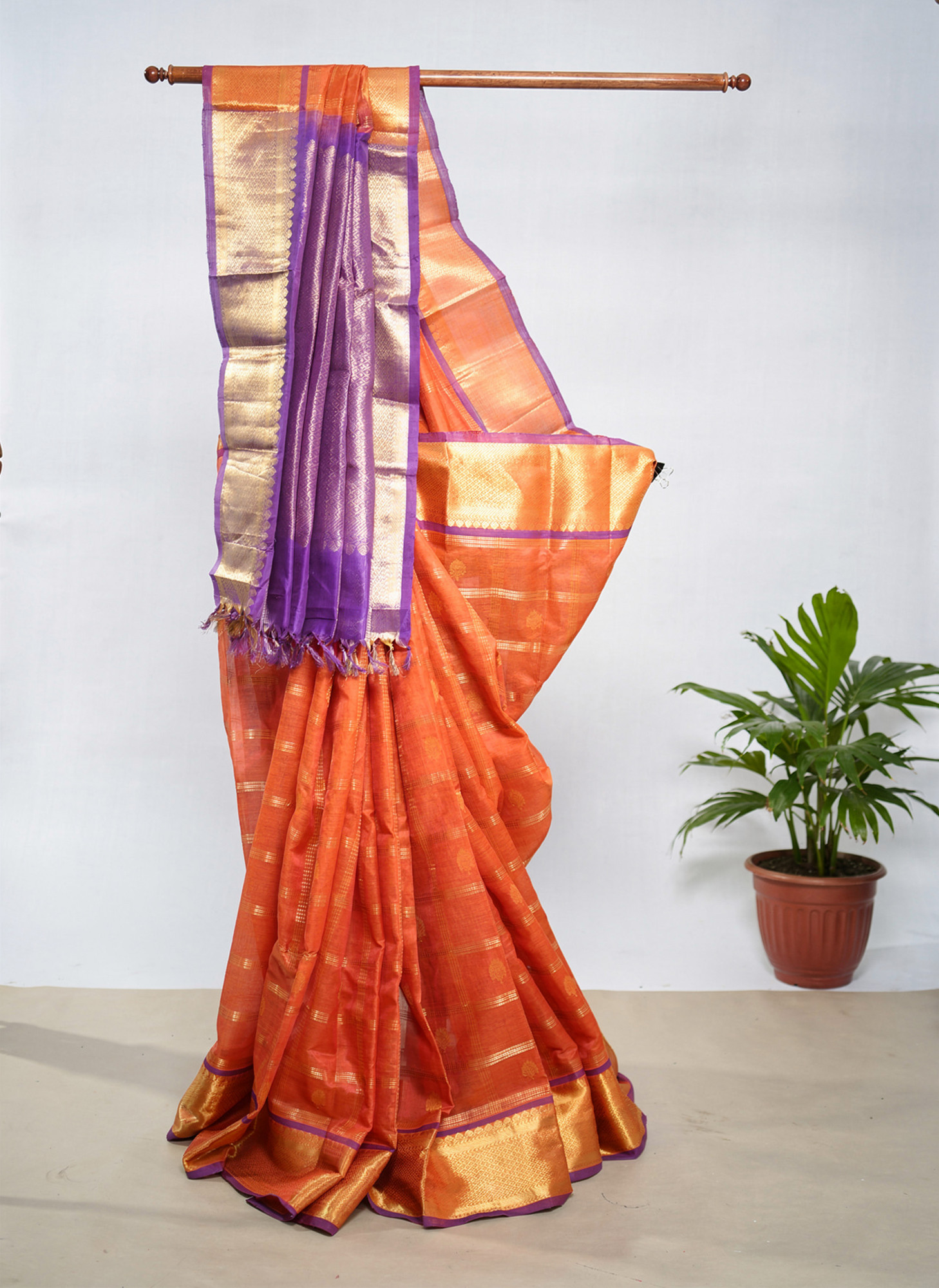 A striking blend of tradition and craftsmanship, this Kuppadam saree from Kanchipuram is known for its distinctive korvai weaving and bold contrast borders. Woven with precision by skilled artisans, it reflects the richness of South Indian textile heritage. The structured elegance and vibrant detailing make it a perfect choice for festive occasions, offering a graceful balance of heritage and contemporary appeal. ✨
