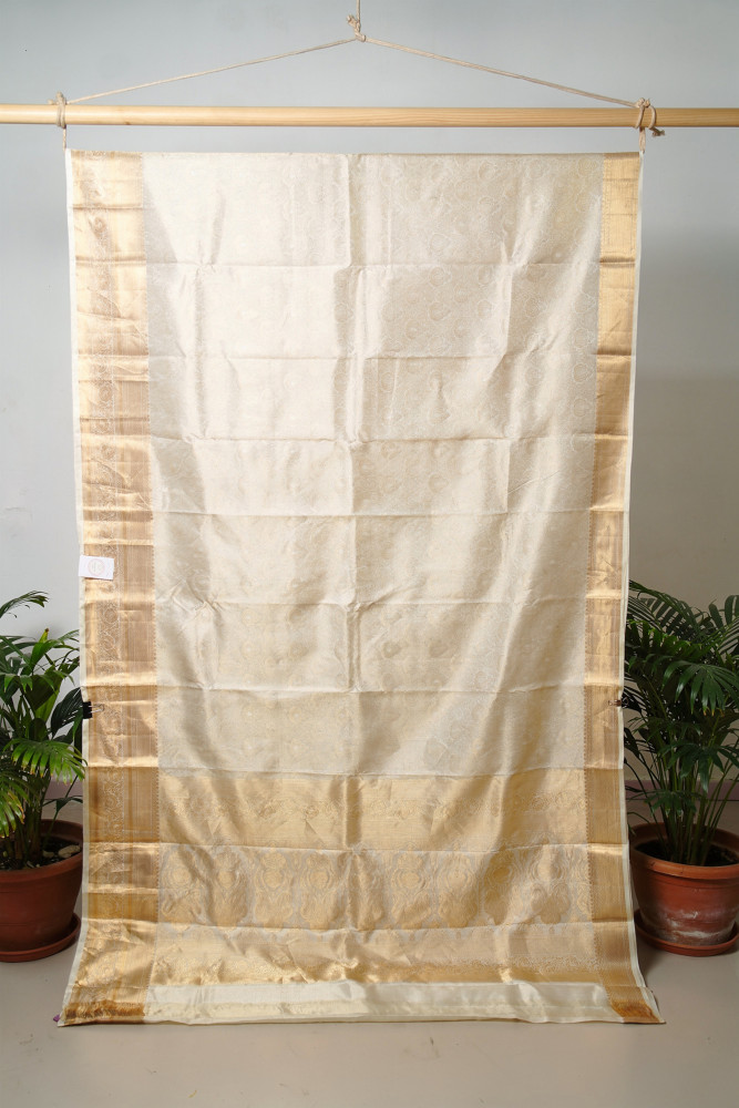 A luminous expression of tradition and luxury, this tissue Kanjivaram saree from Kanchipuram is woven with a delicate metallic sheen that radiates elegance. The rich texture of silk blended with the subtle shimmer of tissue creates a regal drape that stands out effortlessly. Crafted with precision and heritage artistry, this saree is perfect for grand celebrations and occasions where timeless glamour takes center stage. ✨